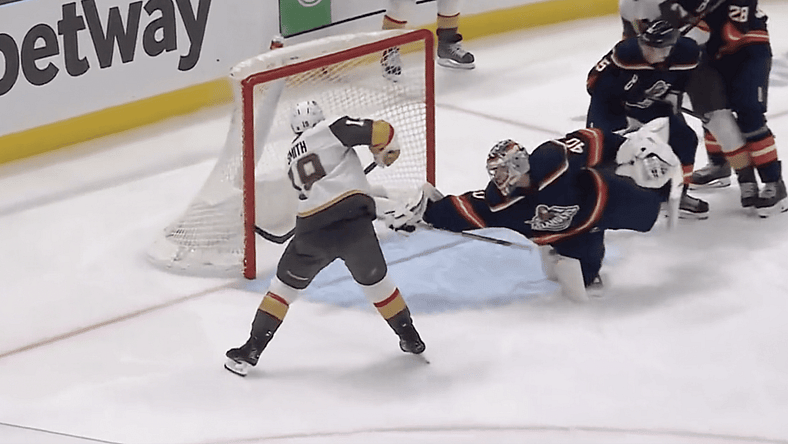 And it seemed like Reilly Smith was going to be the benefactor of a sneaky backdoor pass from teammate William Carrier. Islanders netminder Semyon Varlamov elected not to slide all the way as there was no chance he was getting to the back post in time.