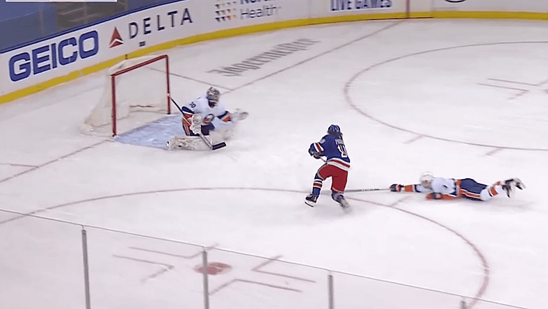 The Islanders didn’t register a single high danger scoring chance five-on-five, according to Natural Stat Trick. They had just four in all situations. The Rangers had 12 in all situations and six high danger chances while five-on-five.