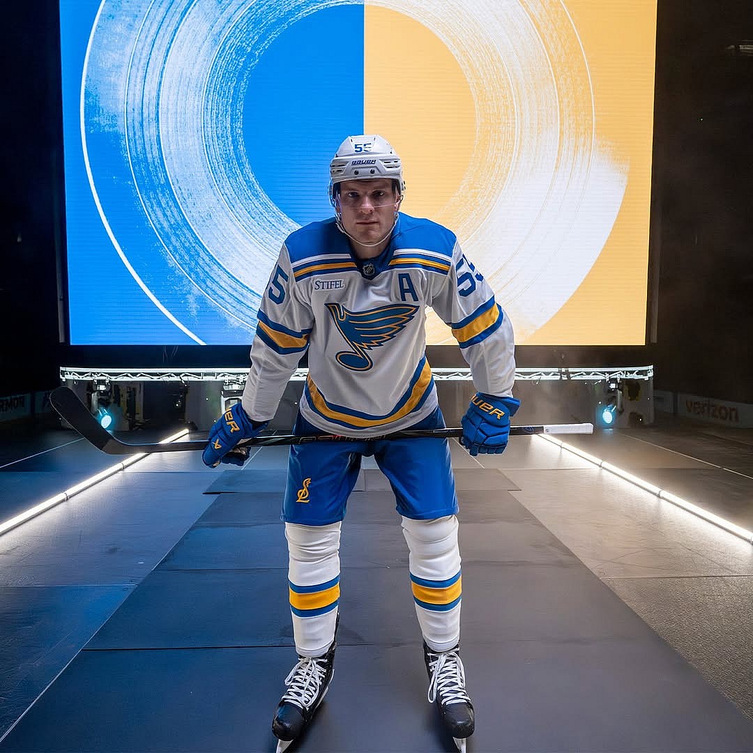 The Blues are rolling out modernized home and away uniforms inspired by the fan-favorite heritage jerseys from their appearances in the Winter Classic, most notably the 2017 and 2022 editions. The new set brings back a familiar look with some fresh updates: sharper colors, cleaner lines, and some more flavor. The road jersey trades in the creme base for a classic white look. Even the pant legs got some love, now featuring a “STL” logo.