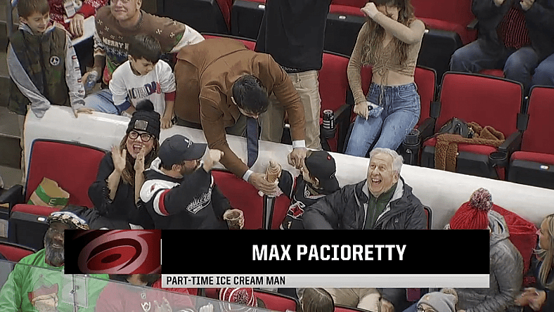Former Vegas Golden Knight Max Pacioretty is going around spreading Holiday cheer. During the Hurricanes' 6-5 win Friday night against the Philadelphia Flyers, Pacioretty noticed a young Canes fan lose his ice cream and decided to play Santa and deliver the kid a new cone of ice cream.