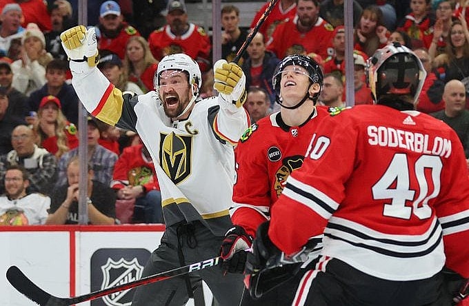 Mark Stone and Paul Cotter (power play) added goals for the Golden Knights. Corey Perry scored for the Blackhawks with 15 seconds remaining for a 5-3 final in favor of the Golden Knights.