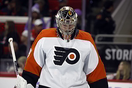 Vegas Golden Knights goaltender Adin Hill exited Monday's name against the Carolina Hurricanes with an injury.