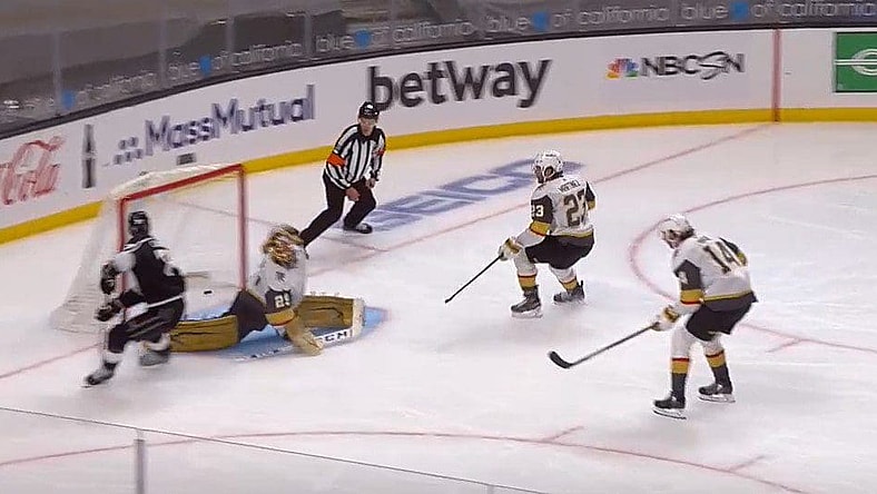It wasn’t just the fact the Kings did a much better job in the dirty areas, but how they kept the puck moving in the Vegas zone. The Misfit Line — Jonathan Marchessault, William Karlsson, and Smith — was on the ice for 2:04 of that shift before the goal, while 1:04 of that was spent in their zone.