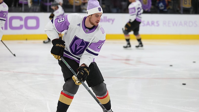 It was Hockey Fights Cancer Knight at T-Mobile Arena. The Golden Knights wore special purple jerseys during warmups and also made numerous classy nods to those who have had cancer affect them.