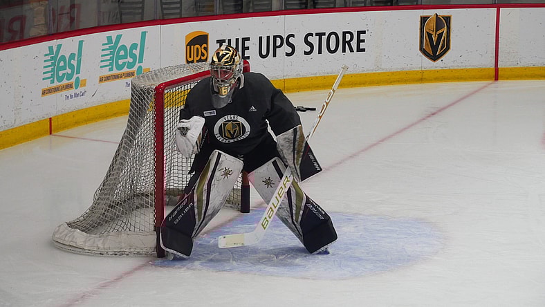 Four Vegas Golden Knights goaltenders skated Saturday morning at City National Arena. Injured goaltenders Logan Thompson and Laurent Brossoit both skated and took shots with the team. Healthy goaltenders Jiri Patera and Jonathan Quick also skated, although Quick skated separately due to there not being enough nets to go around.