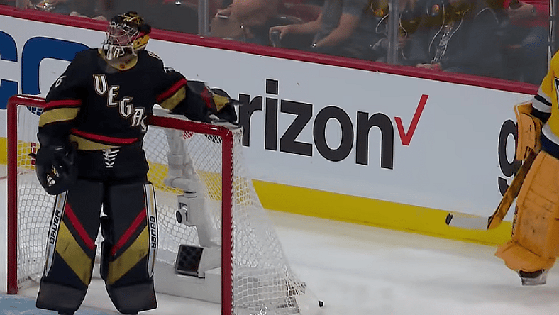 Thompson competed in the new Tendy Tandem Challenge where eight goalies, one goalie from each division split between a shooting goalie and one the in-net goalie. The shooting goalies earned n points based on the accuracy of their shots at the net, and the in-net goalies will face rushes of three, two, or one player(s), based on the number of points earned by the shooting goalie in their tandem. If you are confused, just watch the clip.