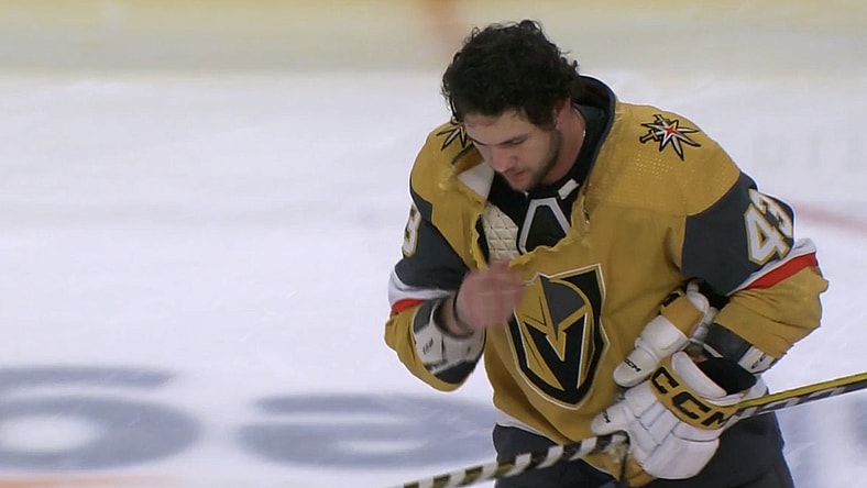 Cotter, who has been up and down the lineup for the Golden Knights for the past couple of weeks, tried to make an impact during the Golden Knight's Thursday game against the Calgary Flames. He was successful. Down 0-2 with no signs of offense at the time, Cotter motivated his team in a more unique way.