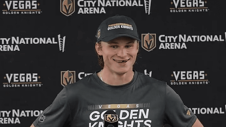 "Since this (bobblehead), I have had my teeth fixed, so I am not missing a tooth. But if you have like white pens or sharpies, you can probably just address that at home," said Theodore after the Golden Knights revealed the bobblehead at Fan Fest 2023.