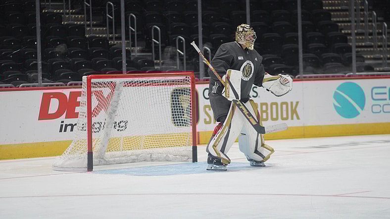 All three goaltenders, in Hill, Laurent Brossoit, and Michael Hutchinson were on the ice for Golden Knight's morning skate.
