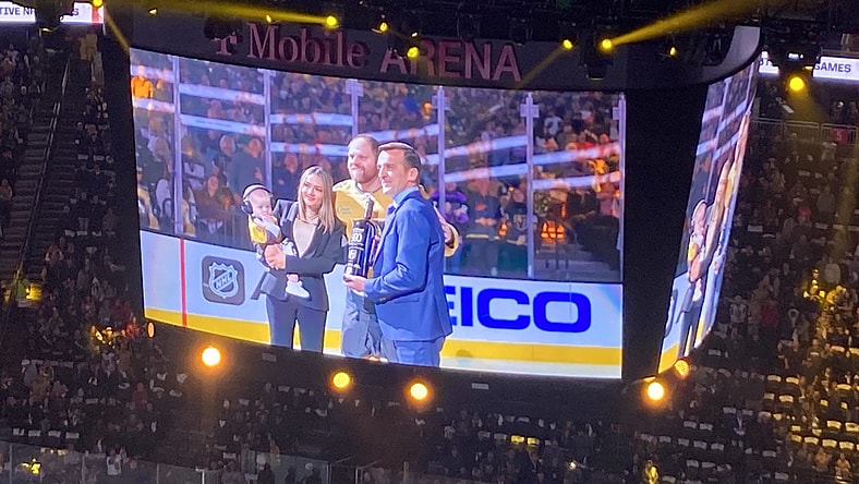 Present for the ceremony were Kessel’s wife Sandra and daughter Kapri as well as Golden Knights president of hockey operations George McPhee. Kessel was given a special 1,000-game straight trophy as well as a bottle of wine for his overall Ironman streak.