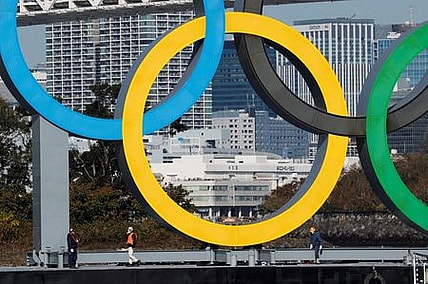 The Olympic rings monument was reinstalled in Tokyo Bay on Tuesday, as organisers ramp up preparations for next year's postponed…