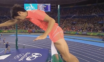 Japanese pole vaulter Hiroki Ogita appeared over the bar. Then his not so little friend got in the way to…