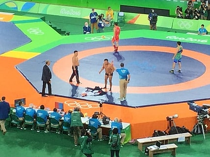 Olympic Mongolian wrestling coach Byambarenchin Bayaraa gave fans a WWE style show on Sunday after a decision that gave Uzbekistan’s Ikhtiyor…