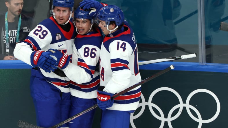 Shortly before Hughes’s first goal, referees waived off a would-be American tally due to what refs ruled was Jake Guentzel’s distinct kicking motion.