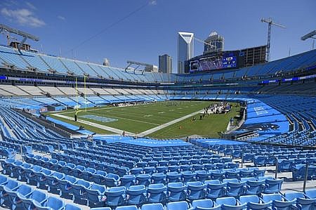 Bank of America Stadium in Charlotte seats about 75,000. Fans will be required to wear face masks and practice social distancing to help prevent the spread of COVID-19.