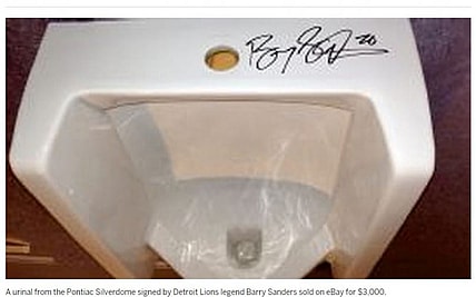 Barry Sanders Autographed Urinal from Silverdome Sells for $3,000
