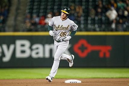 Oakland Athletics star third baseman left Wednesday’s game after being hit in the head by a pitch. Check it out…