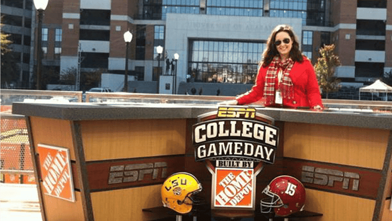 The person in question is Marisa Martin, who according to her LinkedIn page, is a reporter for ESPNU.