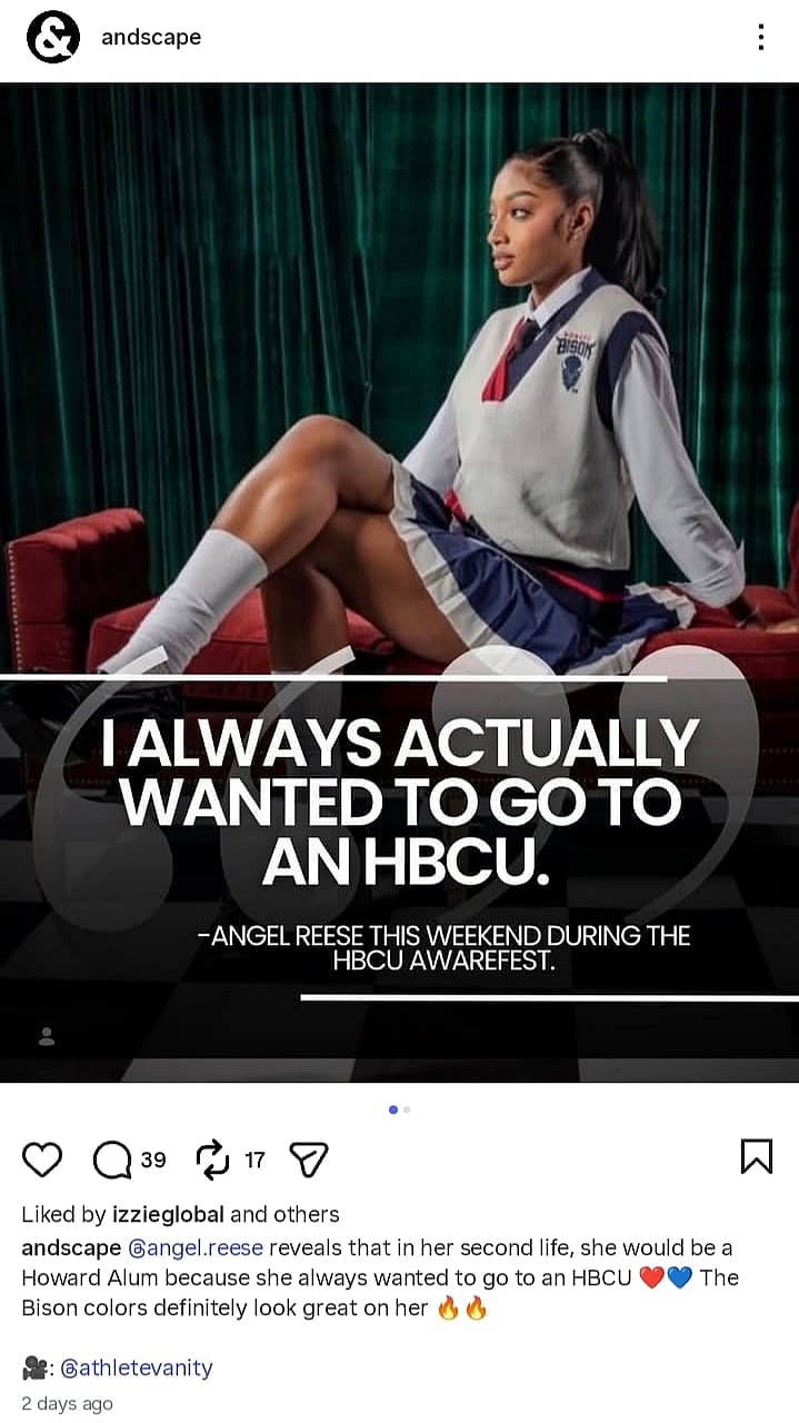 Reese, a Maryland native, has several HBCUs in her area but actually pinpointed Howard University as the specific institution that she would’ve chosen in a video posted to her social media accounts.