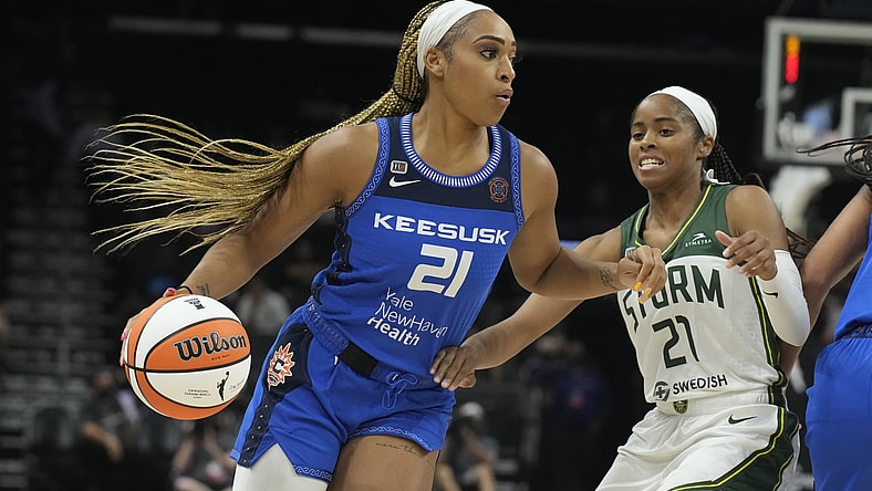 Jonquel Jones led the Connecticut Sun recording her 11th double-double of the season (WNBA leader) with 19 points and 15 rebounds while adding four assists. First-time All-Star Brionna Jones added 16 points, seven rebounds and two steals.